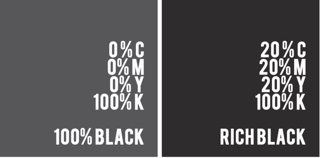– Baskıda CMYK renkleri ile, soluk siyah yerine parlak ve canlı bir siyah oluşmasını istiyorsak CMYK: 0/0/0/100 yerine, CMYK: 60/30/30/100 kullanabiliriz. Ancak bu renklendirmeyi yazılarda ve ince çizgilere sahip şekillerde kullanmak baskıdaki en ufak renk kaymalarının hemen görülmesi sorununa yol açar. Bu nedenle parlak siyahı zemin ve büyük alanların renklendirmesinde kullanmak sağlıklı olacaktır.